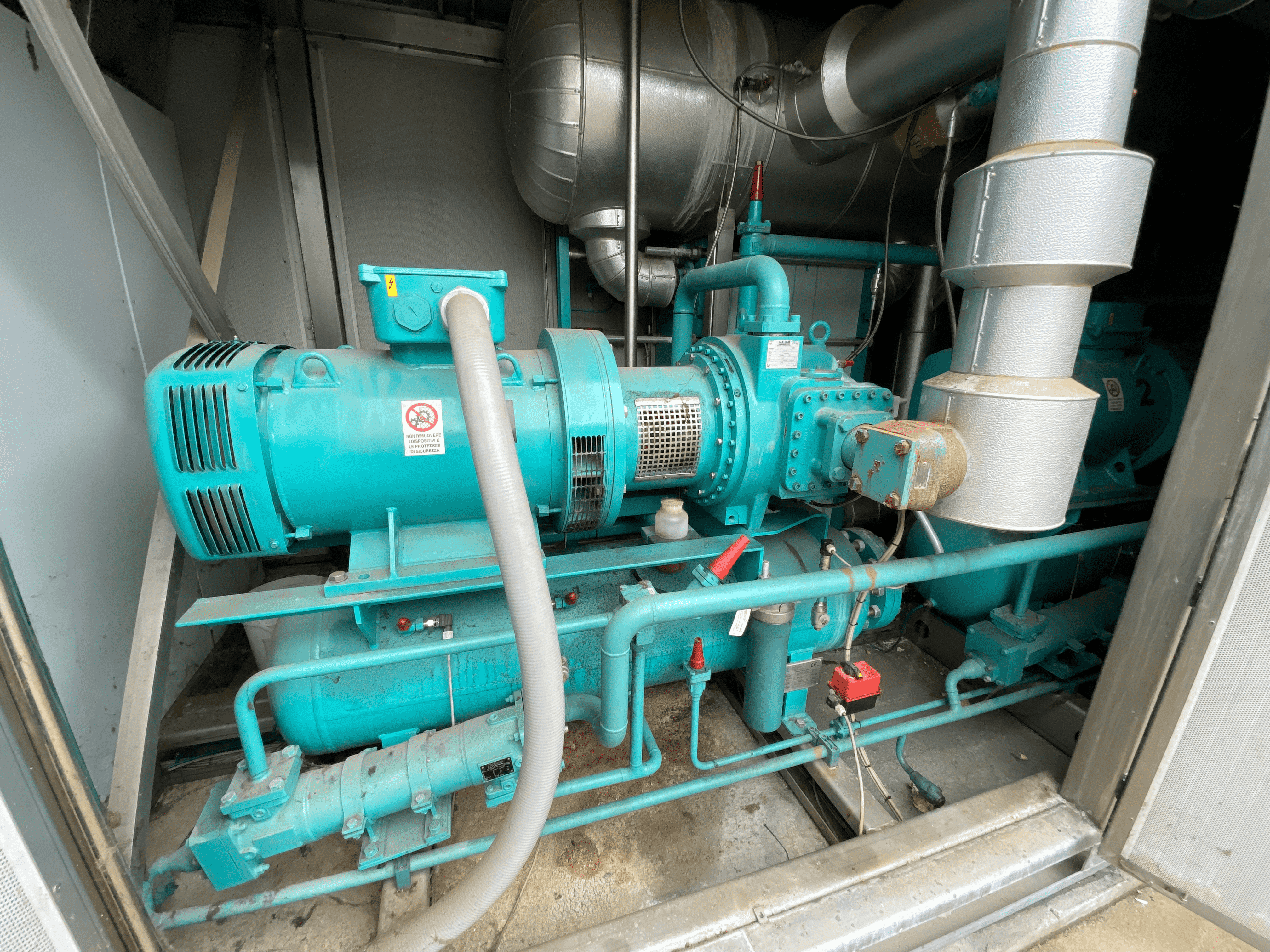 · N. 02 Compressori a vite J&E Hall di tipo aperto con tenuta meccanica lubrificata pompa e filtro dell'olio