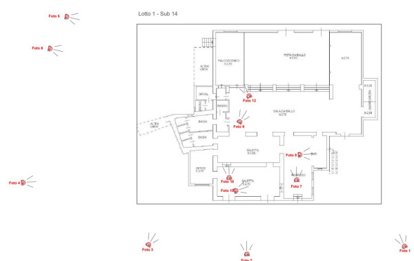 Lotto n. 1 Piena proprietà per la quota di 1/1 di ampio locale ad uso ristorante/sala da ballo con annesso locali ad uso servizio idonei allo svolgimento dell'attività di locale da ballo e ristorazione. L'immobile risulta recentemente ristrutturato e dotato di impiantistica moderna e conforme alle vigenti normative. L' unità immobiliare è identificata al catasto fabbricati al foglio 34 particella 446 subalterno 14. Contesto: L’immobile oggetto di stima è situato in zona agricola e non si rilevano locali con destinazione similare nelle aree immediatamente limitrofe.