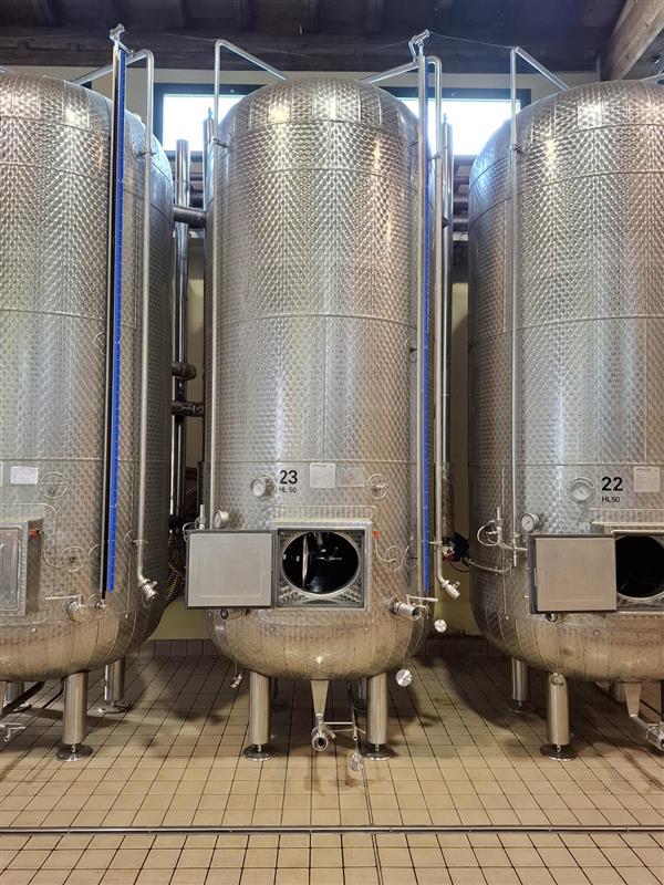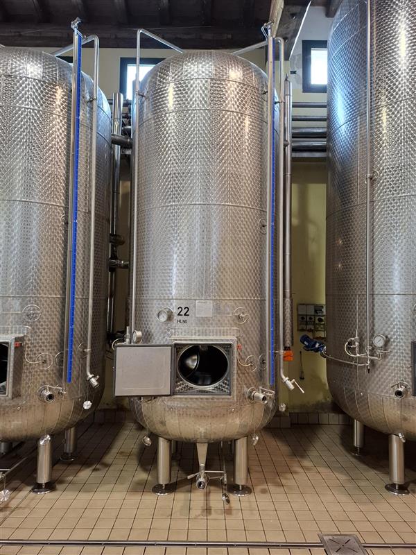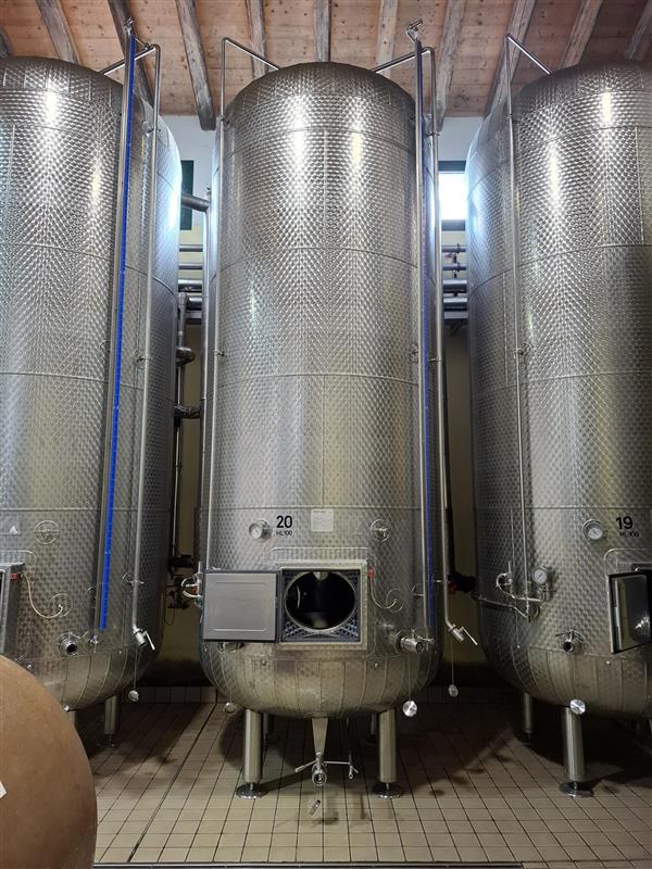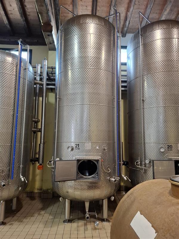 In asta n. 4 autoclavi cilindriche verticali da 50 hl e n. 4 autoclavi cilindriche verticali da 100 hl oltre alla centrale di refrigerazione.