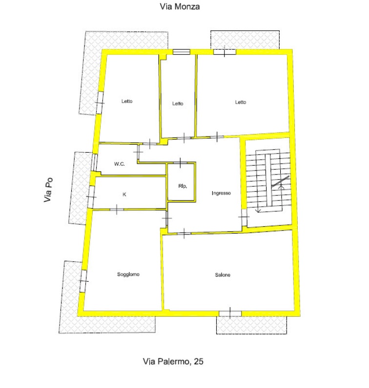 Appartamento ad uso residenziale sito in Gela, nel quartiere SantaIppolito, tra le vie Po, Monza e Palermo, da cui ha ingresso in corrispondenza del civico n.25. Il bene a posto al primo piano di un edificio di complessive quattro elevazioni fuori terra. L'appartamento si compone di cinque vani oltre accessori e misura circa 147 mq di superficie utile, oltre a 32 mq di balconi. Internamente a rifinito con pavimenti in clinker, pareti in pittura lavabile, infissi interni in legno tamburato ed esterni in alluminio anodizzato con serrande avvolgibili.