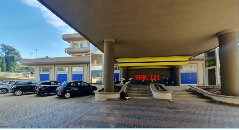- Sub 121 di 880 mq. comm.: locale commerciale di grandi dimensioni, con accesso da area di pertinenza, suddiviso in ampio locale di vendita e blocco servizi formato da disimpegno, ufficio, locale Q.E., due bagni privati e due bagni con antibagno aperti al pubblico.