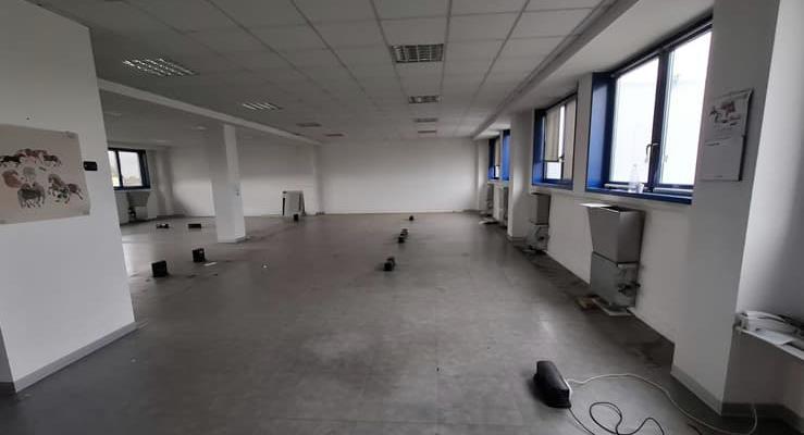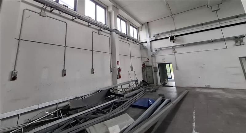 All'interno gli spazi risultano suddivisi in grande vano ad uso magazzino con un'altezza massima di circa 11 metri, collegato ad ulteriore vano ad uso artigianale/magazzino a doppia altezza (circa 7 mt di altezza), che conduce al blocco servizi, deposito e ripostiglio, locali tecnici - sala macchine e centrale termica.