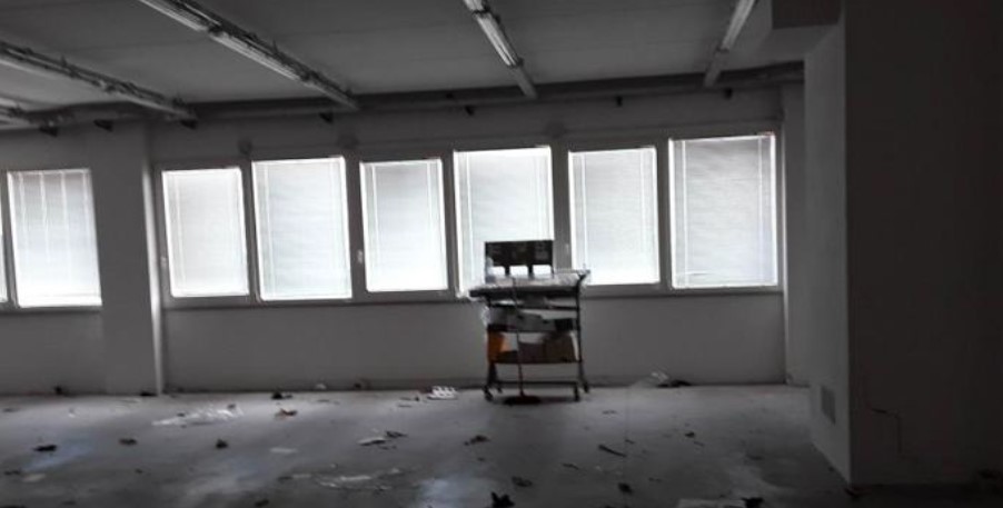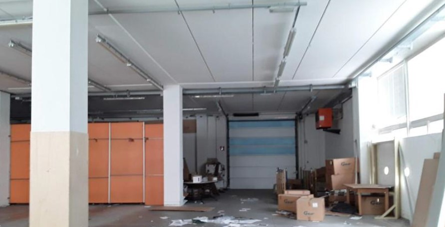 - disimpegno, vano montacarichi, ufficio, servizio e magazzino, con terrazzo accessibile dal vano ufficio e dal vano magazzino al piano primo. Dal confronto tra stato dei luoghi e planimetria catastale ultima in atti (del 25/10/2010) non emergono difformità, fatta eccezione per un modesto vano di 6,5 mq realizzato in cartongesso, presente al piano terra in prossimità dell’accesso, vicino al vano montacarichi.