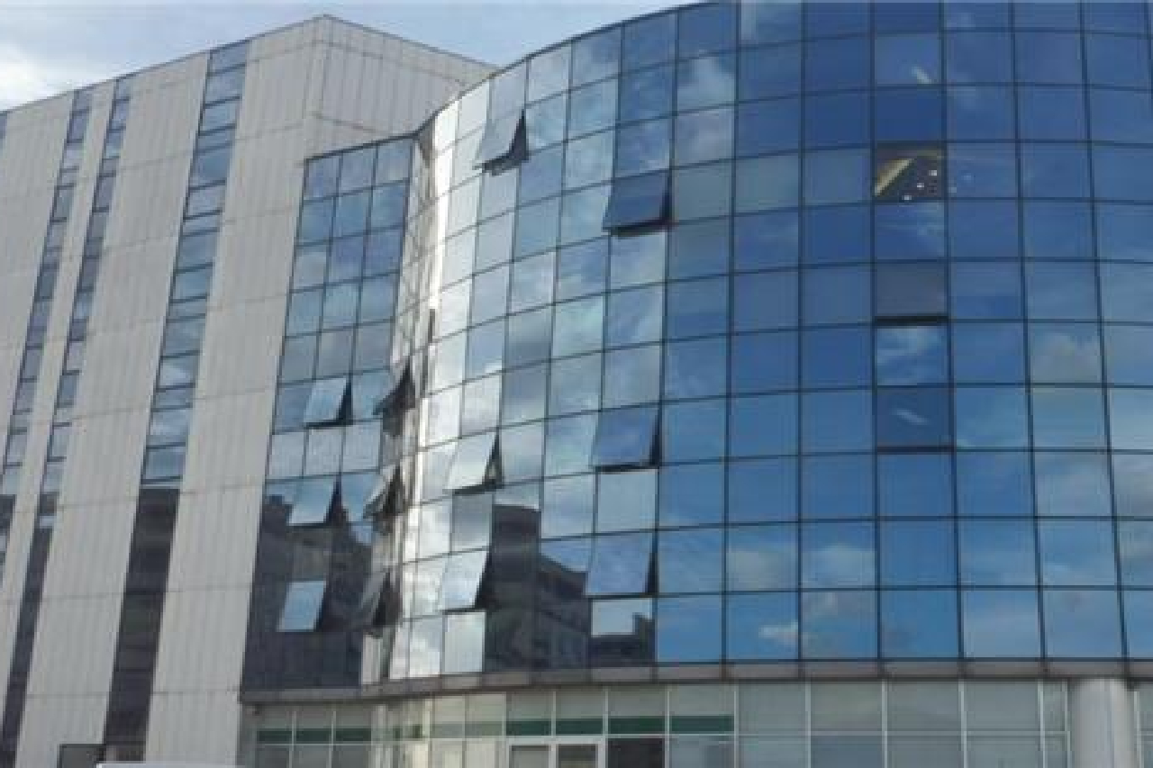 L'edificio, ubicato al secondo piano, è composto da una piastra di due piani di elevazione di forma regolare e da restante porzione dell'edificio con geometrie curve.