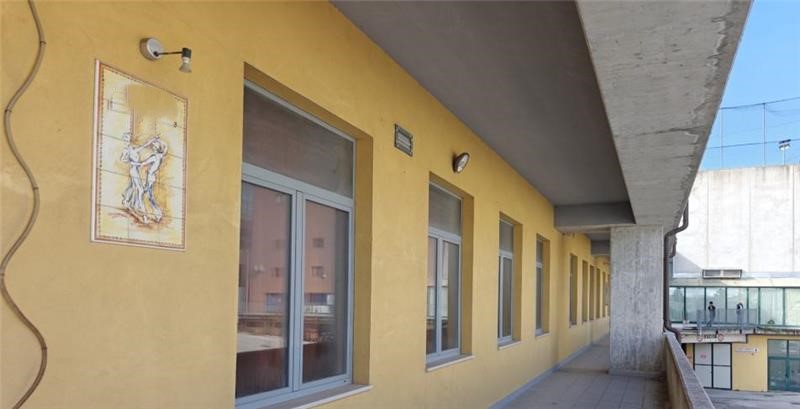 L'interno presenta pareti intonacate e tinteggiate, infissi in alluminio e vetro, porte interne tamburate, controsoffitto fonoassorbente per il passaggio degli impianti, pavimenti in ceramica, servizi igienici.