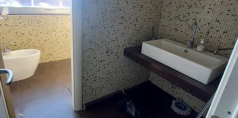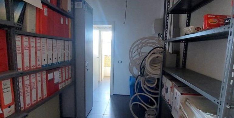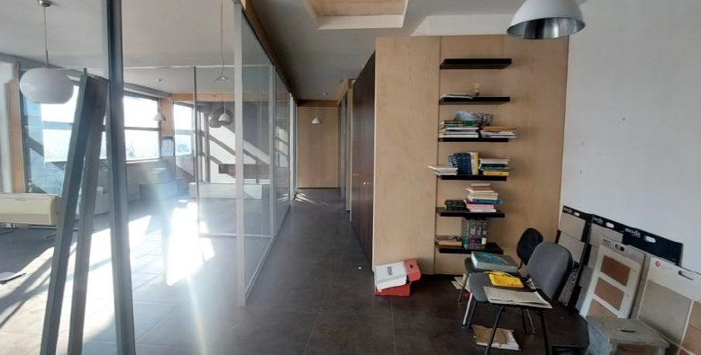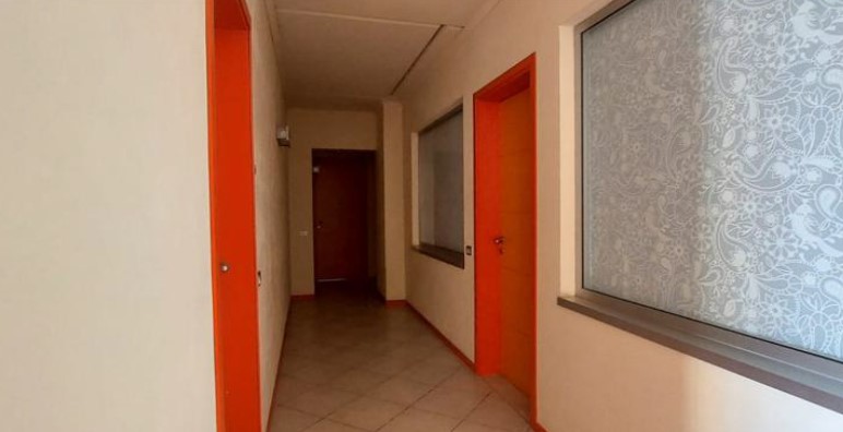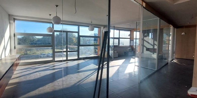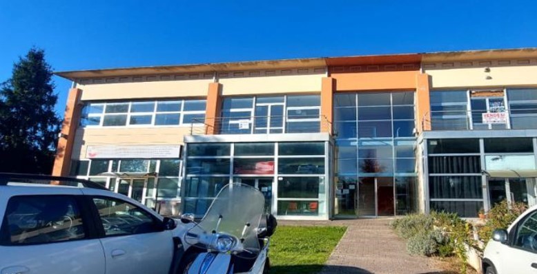 L'ufficio è ubicato al primo piano ed è internamente suddiviso in grande vano con due accessi da vano scala comune, due bagni con antibagno, un terrazzo e un resede esclusivo al piano terra, adibito a parcheggio a raso.