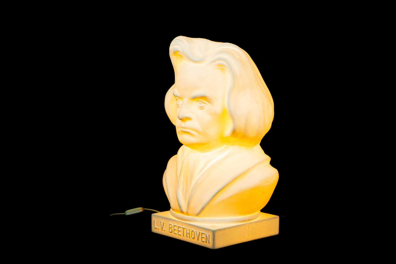 Descrizione: LAMPADA LUMINOSA CON BUSTO MUSICISTA L.V. BEETHOVEN. OGGETTO DA ARREDO FUORI PRODUZIONE ANNI 80' RARO ED INTROVABILE, DA COLLEZIONE